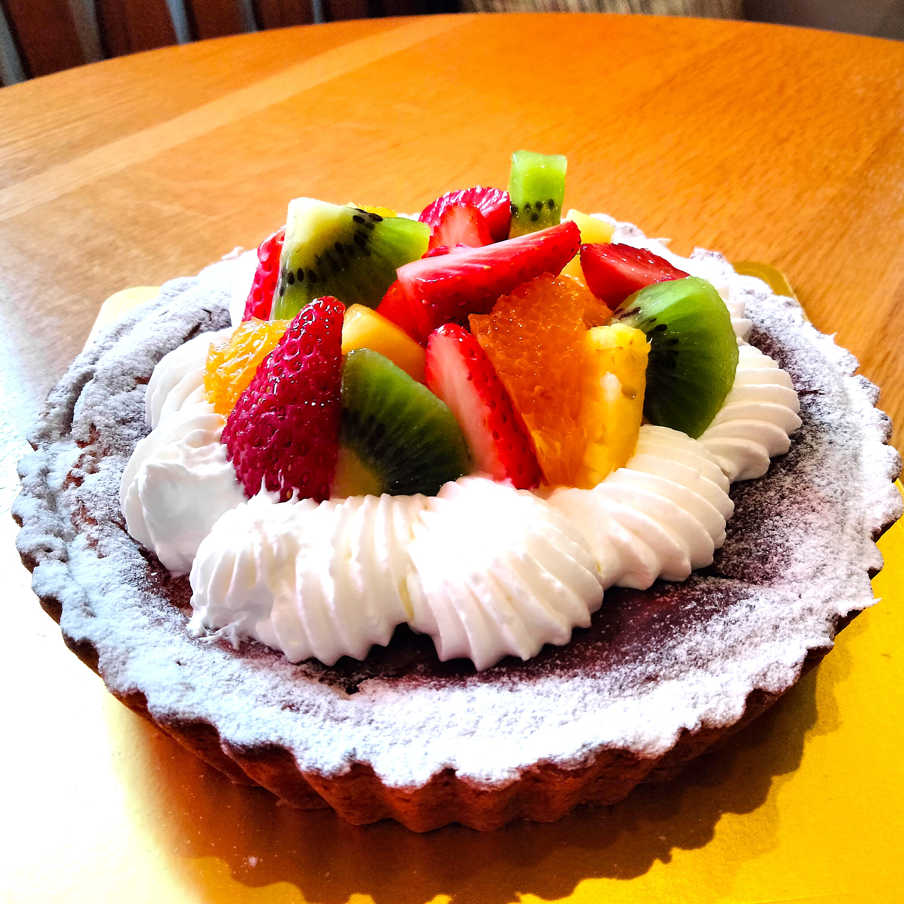発酵バターを使った香ばしいタルト台にたっぷりのカスタードクリームとフルーツ。
